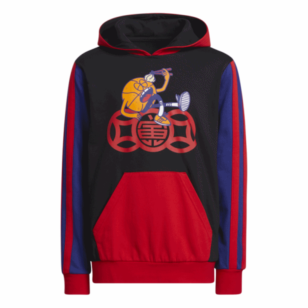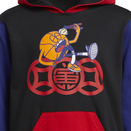 "Öffnen Sie die Schichten, starten Sie das Spiel. Dieser Hoodie mit adidate Basketball gibt Kindern etwas Warmes in Ballturnieren auf dem Spielplatz und auf dem Hinterhof zu verwenden. Das Design ist verrückt mit leuchtenden Farben und Grafiken. AEROREADY absorbiert Feuchtigkeit, so bleiben die kleinen MVPs trocken, bevor es kalt ist.
