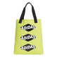 Diese Tasche sieht aus wie ein buntes Design, inspiriert von alltäglichen Konsumgüterverpackungen. Es sieht aus wie das Logo der Klee und Adidas. Es wurde in einem 100% Baumwollgewebe hergestellt und umfasst zwei Stoffgriffe.