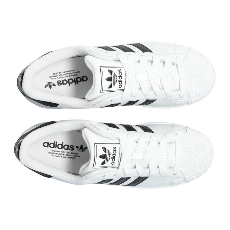 Depuis son lancement dans les années 1970, la Superstar a évolué et s'est adaptée aux tendances de la mode et aux besoins des consommateurs, tout en conservant son essence iconique. Cette version, en noir et blanc, réaffirme son statut d'indispensable de la garde-robe.