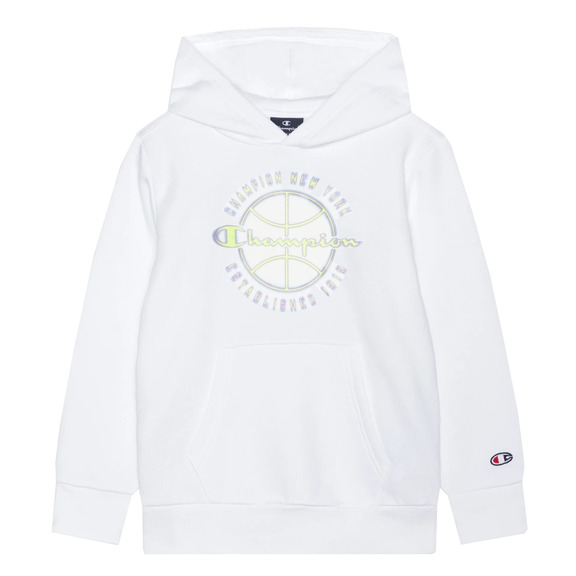 Champion Kids Modern Basketball Big Logo Hoodie "White"