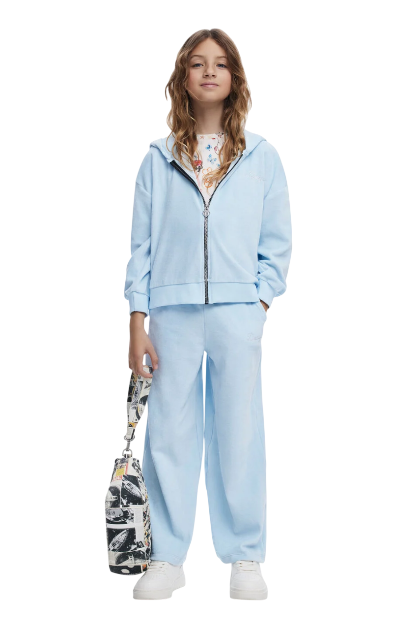 Entdecken Sie, wie das Desigual Sweatshirt mit kleinen Ohren und Strass-Logo "Aqua Blue" Ihrem Kleiderschrank eine frische Perspektive verleiht!