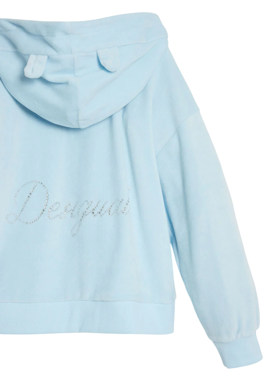 Desigual Sweatshirt with little ears and rhinestone logo "Aqua Blue"