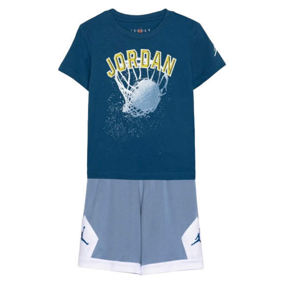 Konjunktiv Jordanien Kinder JDB Jumpman Wrap Logo Tee und Short Set "Black-Light Dew"