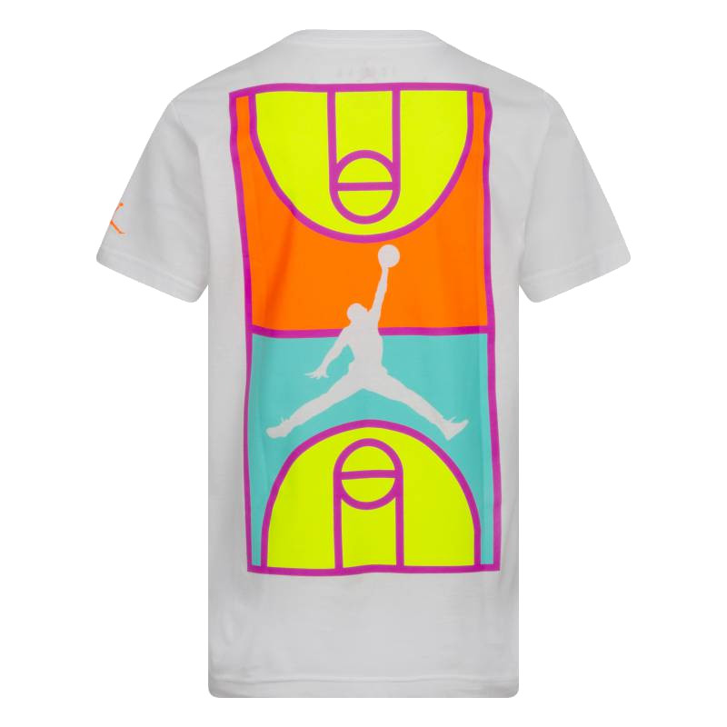 Vuela alto con el mejor estilo de Jordan. Esta camiseta tiene un gráfico de una cancha de baloncesto en el pecho y el mismo gráfico en grande en la espalda. Está confeccionada en un tejido suave de algodón.