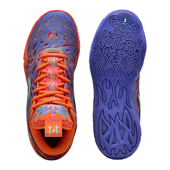 The sole of the MB.04 is a canvas for creativity. In its design, you can find surprising elements such as a floating spaceship, the texts "NOT FROM HERE" and "RARE", as well as flames on the heel. These details not only enhance the visual design, but also invoke the MELo DNA, conveying the unique essence of LaMelo Ball.