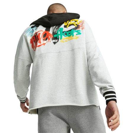 Lassen Sie uns den Basketball mit diesem Kapuzenpullover auf die Straßen zurückbringen, der Grafiken enthält, die von der Graphitis in Vorder- und Rückseite inspiriert sind.