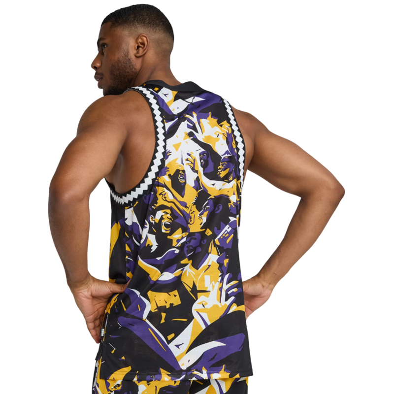 Es ist viel mehr als nur ein Tanktop; Es ist eine Feier des Basketballs und seiner pulsierenden Energie. Wenn Sie es anziehen, werden Sie spüren, wie sein kräftiger, farbenfroher Aufdruck Ihren Wettbewerbsgeist auf dem Platz neu belebt. Das umfassende visuelle Musterdesign ist ein Stil-Statement, das sorgfältig durchdacht wurde, um die Lebendigkeit jedes Spiels einzufangen. Dieses Design, begleitet vom kultigen PUMA-Gummilogo, verleiht jedem Kleidungsstück Authentizität und einen einzigartigen Stil.