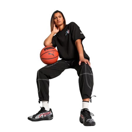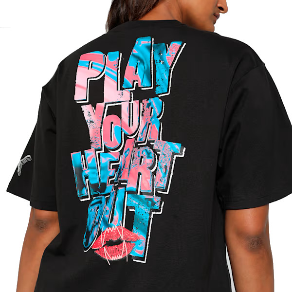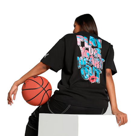 Puma Woman\'s Basketball Cherry auf Top-Grafik überdimensional Fit Tee "Schwarz"